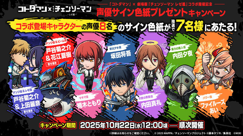 「コトダマン」 × 劇場版『チェンソーマン レゼ篇』コラボ開催記念 声優サイン色紙プレゼントキャンペーン
