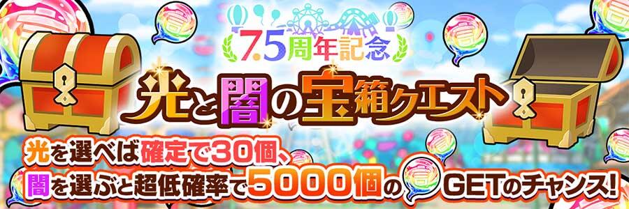 ※7.5周年記念プレゼントは、受取BOXへの配布となります。期間中一回のみ、お受け取りいただけます。また、一度タイトル画面に戻り、再ログインしないとお受け取りいただけませんので、ご注意ください。