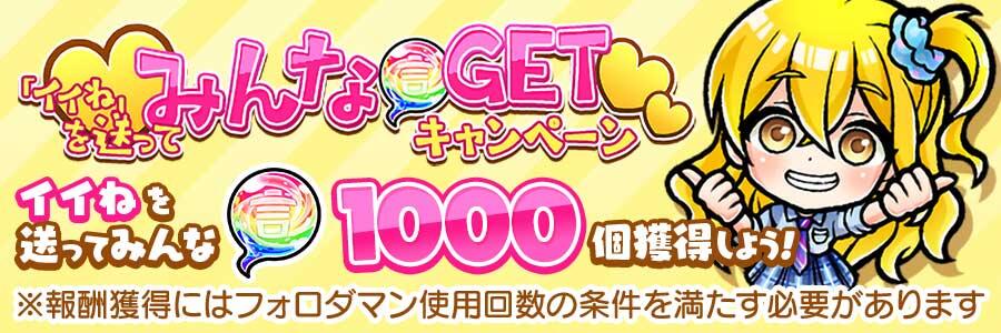 期間中に送られた全ユーザーにおける「イイね」の総数が「5,000,000」を達成&個人での「フォロダマン」使用回数が「15回」達成で、「虹のコトダマ」1,000個をプレゼント!