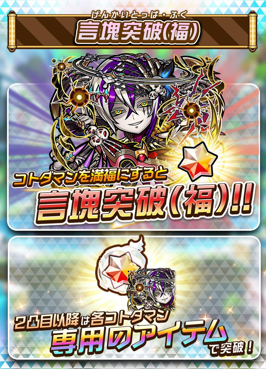 対象となるコトダマンを満福にすると、新たな育成要素「言塊突破(福)」が解放されるようになりました。