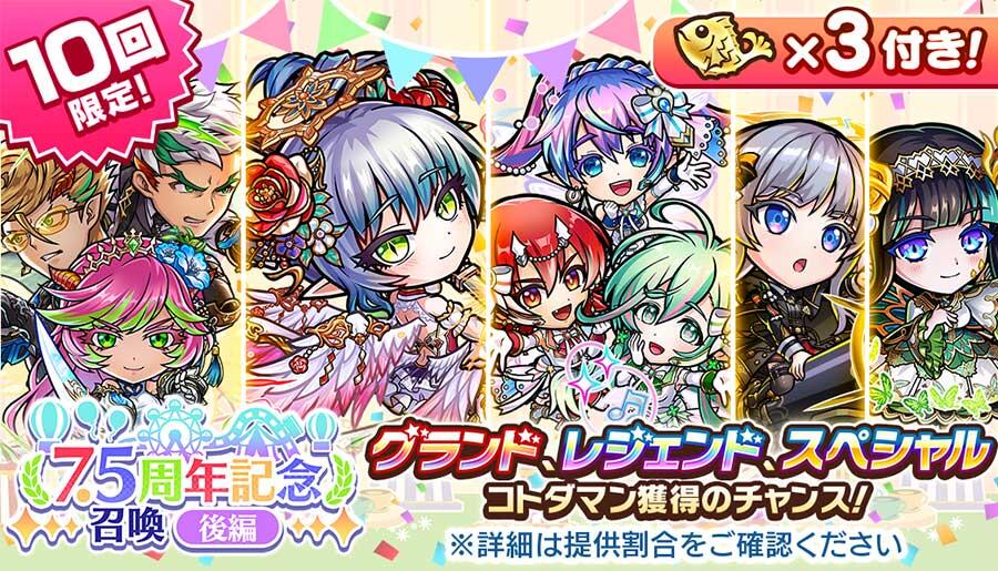 | ▼コトダマン7.5周年記念召喚【後編】について |