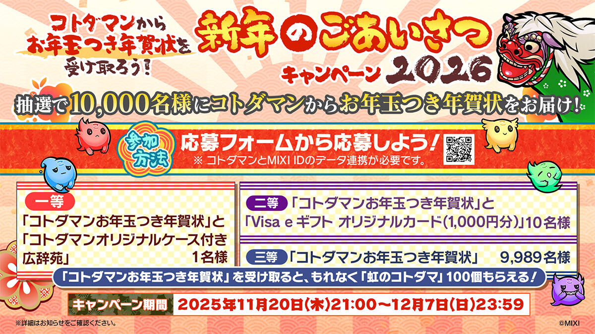 コトダマンからお年玉つき年賀状を受け取ろう!新年のごあいさつキャンペーン2026 開催!