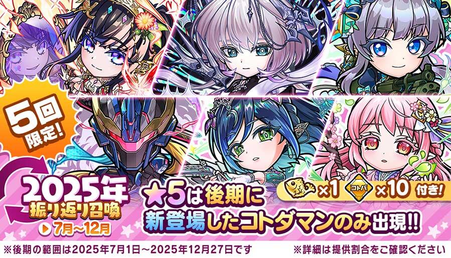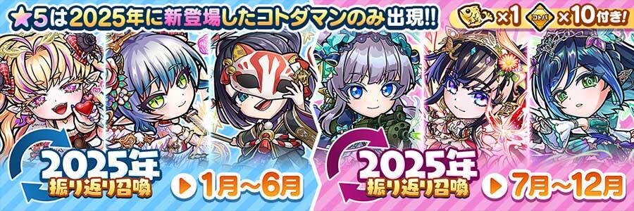 「2025年振り返り召喚1月~6月」には、グランドコトダマン「カレン&ココウ&イアツ」や「ツラミ(払暁)」などがラインナップ!