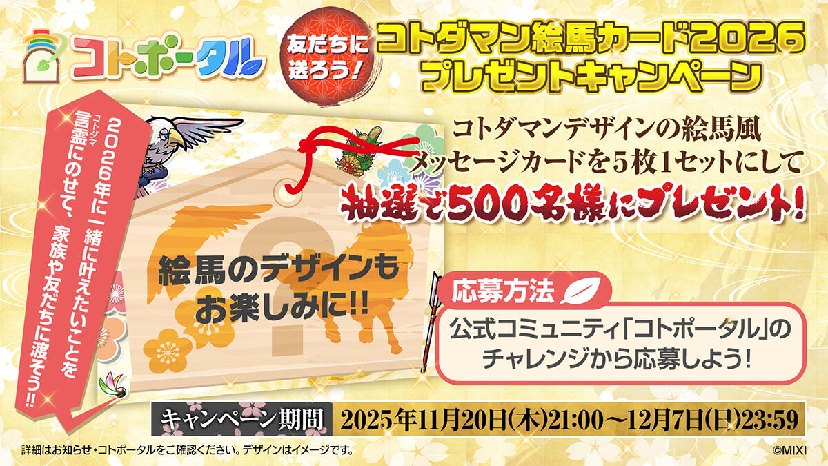 友だちに送ろう!コトダマン絵馬カード2026プレゼントキャンペーン