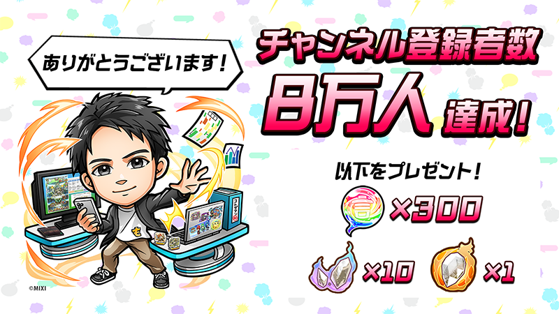 そこで、以下の期間中、ログインしてくださったすべてのお客様に「公式YouTubeチャンネル登録者数8万人達成のお礼」としてゲーム内アイテムを配布いたします。