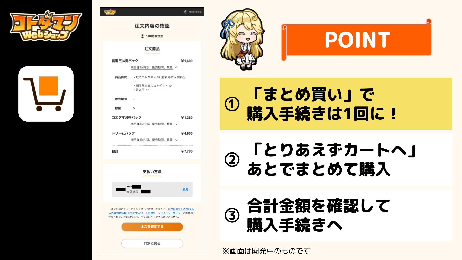 アプリ内の「ショップ」にはない、「コトダマンWebショップ」だけの便利な機能をご紹介!