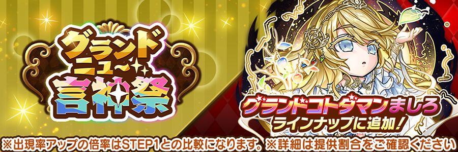 新たに「ましろ」を追加し、合計5体のグランドコトダマンがラインナップされた「グランドニュー言神祭」と、レジェンドコトダマンが出現する「レジェンドニュー言神祭」が登場!