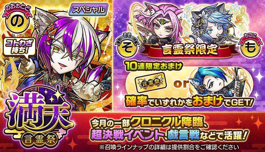 - 言霊祭召喚は「満天・言霊祭召喚」のほか、別途、特別な言霊祭召喚として開催される場合があります。