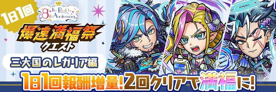 - 【1日1回】爆速満福祭クエスト 三大国のレガリア編
