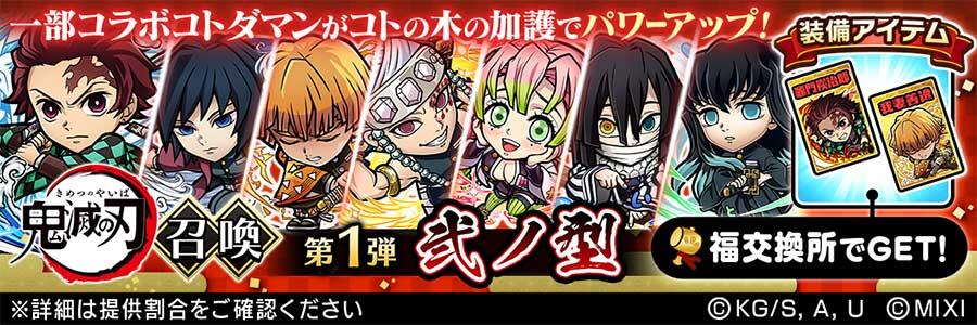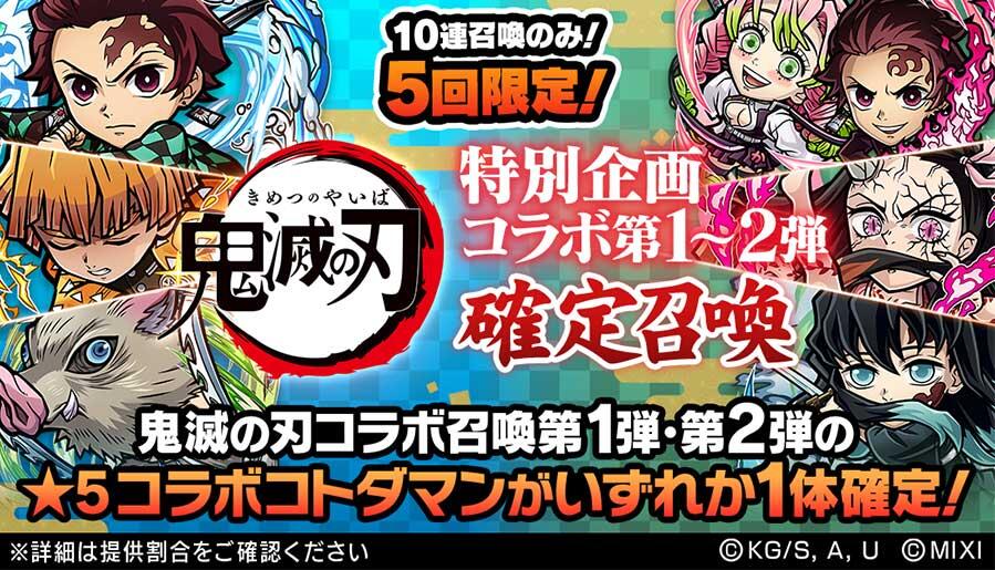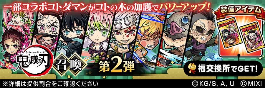 「鬼滅の刃召喚 第2弾」「鬼滅の刃召喚 第1弾壱ノ型」「鬼滅の刃召喚 第1弾弐ノ型」から出現する★5コラボコトダマンが1体確定!