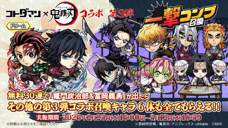 「ドリームコトダマン」「スペシャルコトダマン」を含む「鬼滅の刃召喚 第3弾」のコラボコトダマンがラインナップ!