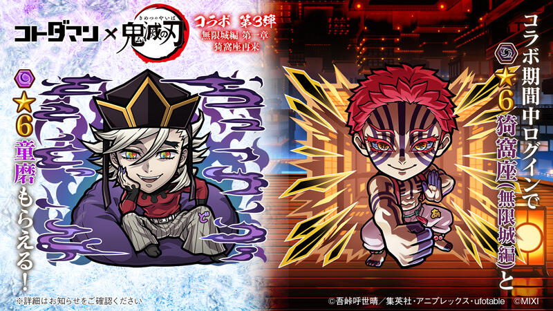 2月25日(水) 16:00より『「コトダマン」× アニメ「鬼滅の刃」コラボ 第3弾 無限城編 第一章 猗窩座再来』スタート!
