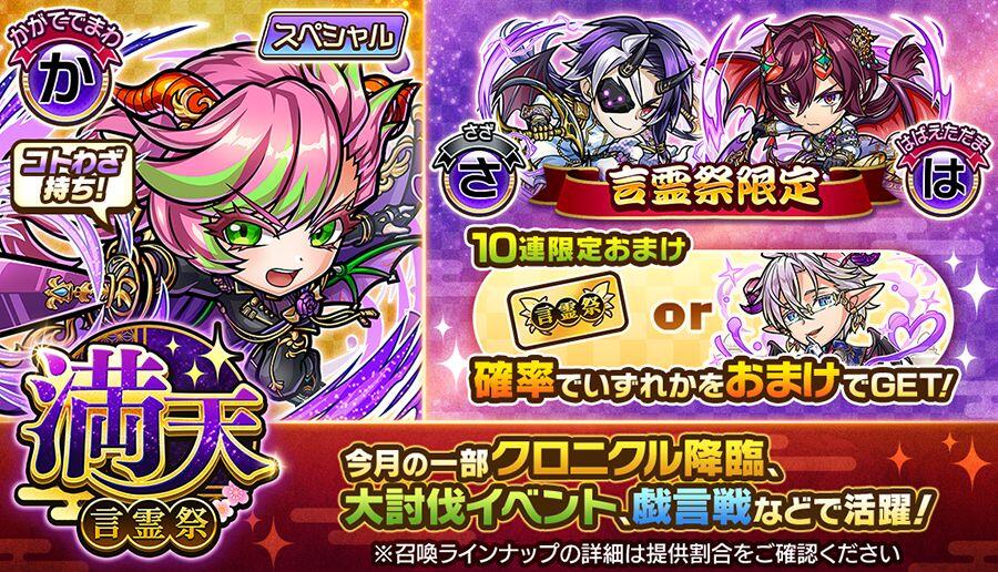 - 言霊祭召喚は「満天・言霊祭召喚」のほか、別途、特別な言霊祭召喚として開催される場合があります。