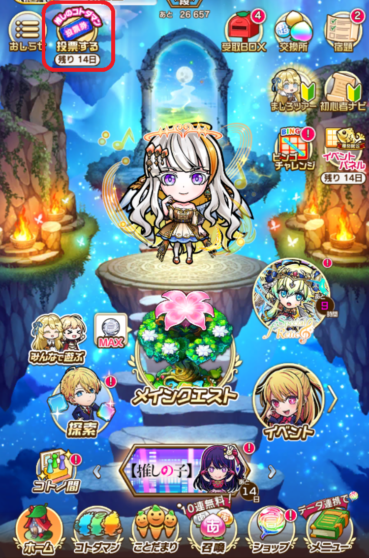 「【推しの子】チケット交換所」で★5コラボコトダマンなどと交換できる「【推しの子】チケット」を獲得できます。