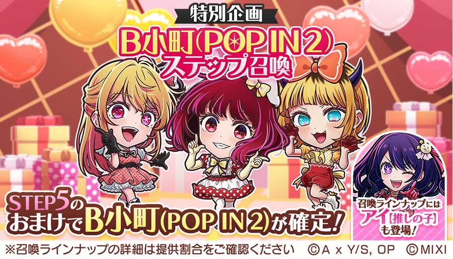 新たなコラボコトダマン「B小町(POP IN 2)」が登場!「特別企画 B小町(POP IN 2) ステップ召喚」のSTEP5のおまけで1体もらえる!