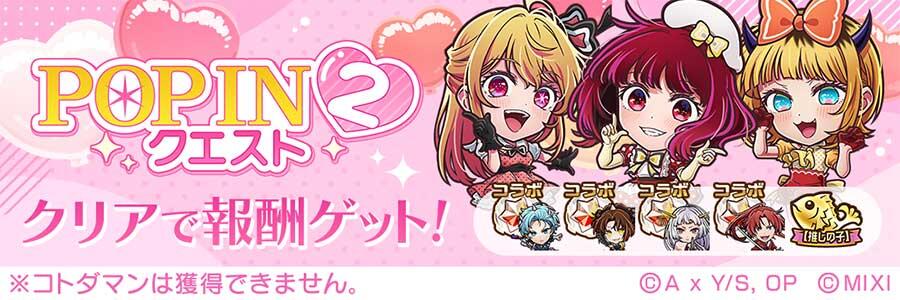- 「B小町(POP IN 2)」「アイ【推しの子】」以外のコラボコトダマンは出現しません。