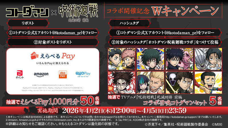 抽選で「えらべるPay」1,000円分や「コラボ召喚コトダマンセット」が当たる!