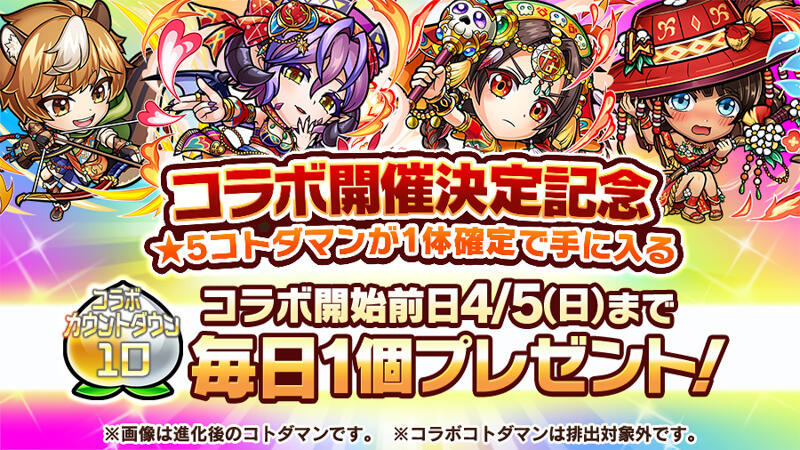 ★5コトダマンが1体確定で出現する「10連コラボカウントダウンキャンペーンの実」をプレゼント!