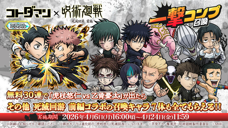 『コトダマン』×TVアニメ『呪術廻戦』死滅回游 前編コラボ 開催決定!