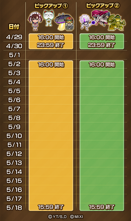 以下のスケジュールでピックアップ召喚を実施いたします。