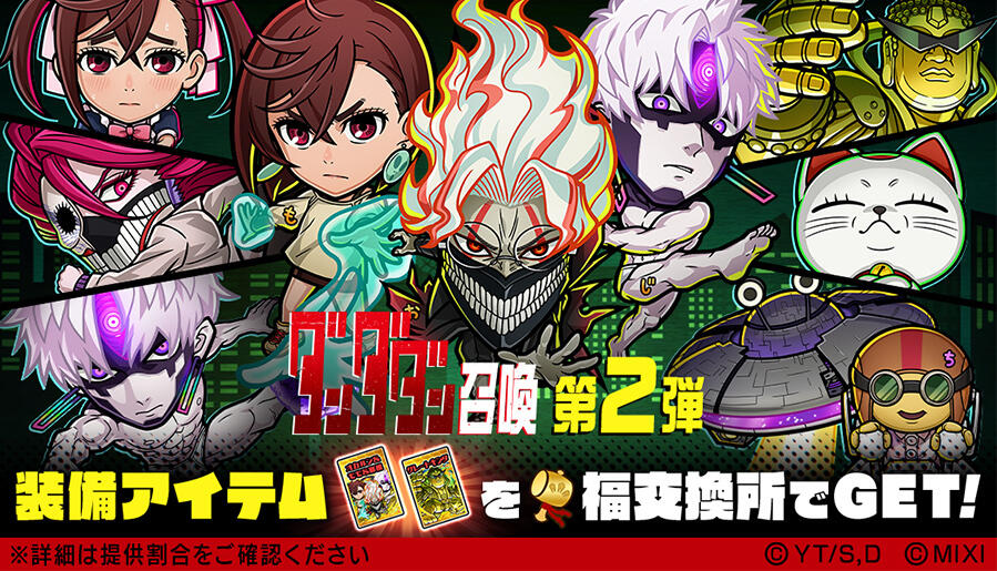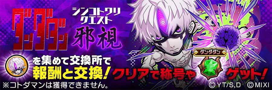 グループ「ダンダダン」が装着条件の「シンコトワリ」を獲得できるコラボクエスト「邪視」や、TVアニメ『ダンダダン』の名シーンを再現したコラボクエスト「発進!グレートキンタ!」なども登場!