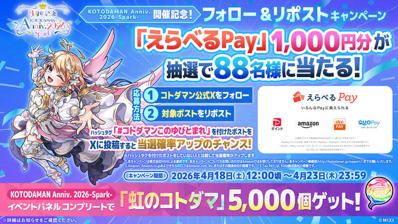 4月18日(土)より、8周年記念イベント「KOTODAMAN Anniv. 2026 -Spark-」がスタート!