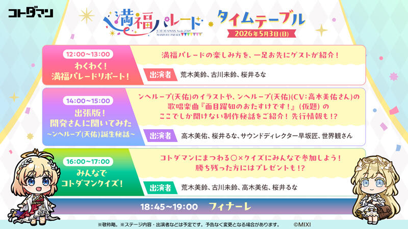 【ステージ詳細&タイアップ決定】オフラインイベント「KOTODAMAN Anniv. 2026 満福パレード」情報!(4/24 18:30追記)